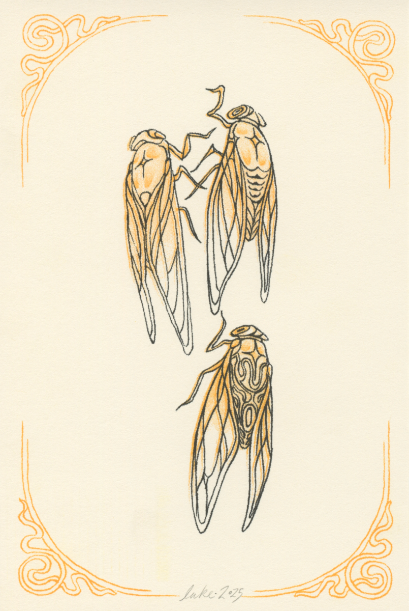 two color riso print "cicadas"