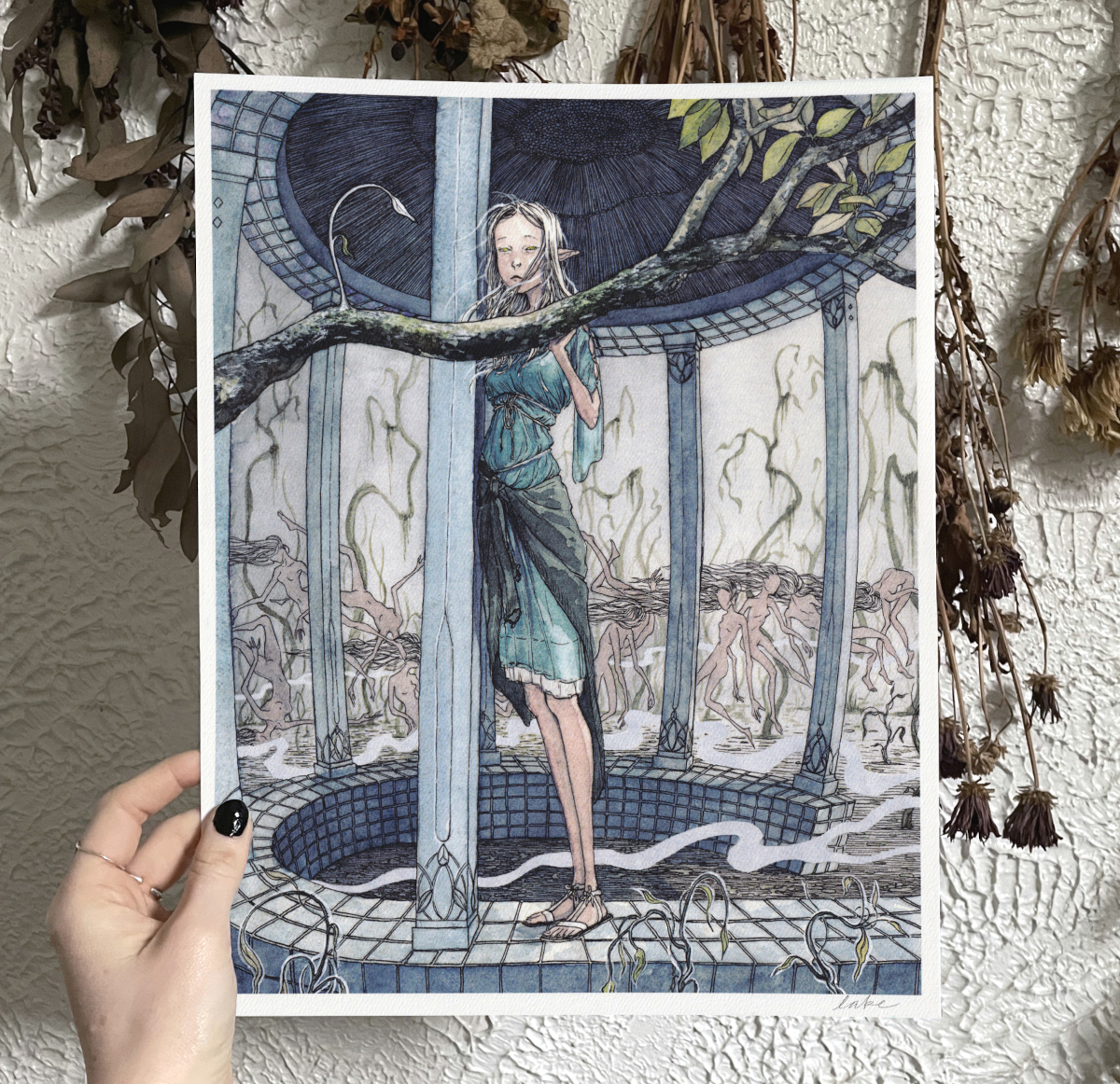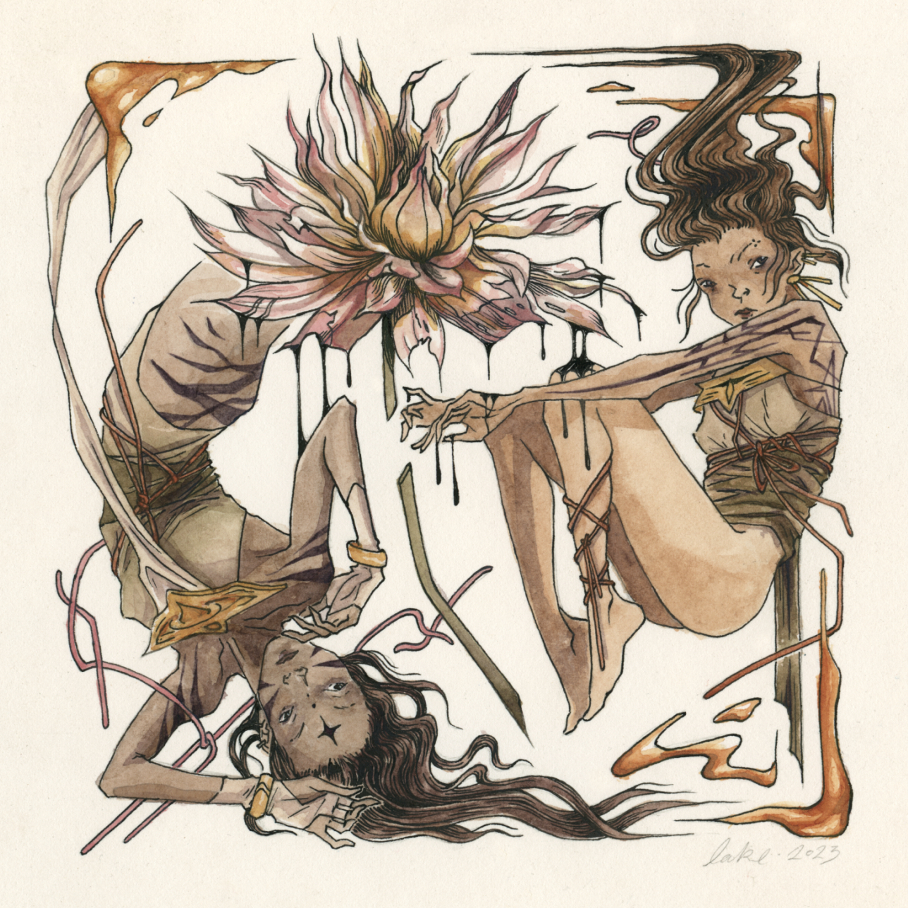 "slow drip" - ink and watercolor commission